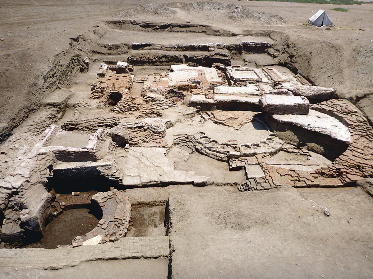From 2007, our research focused on the spatial distribution of these workshops and their setting within the urban environment. This led to excavations in the Ptolemaic residential quarter (P5). Here there were houses with cellular foundations, where Roman kilns were established later. In cooperation with the ANR Balnéorient, a study, with excavations, was resumed at the baths (P10). These had been previously excavated by the EES and were located a short distance away. During their history, which is marked by three phases between the 2nd century BC and 2nd century AD, the second phase, the transition between the Greek and Roman period, has provided significant fresh data.