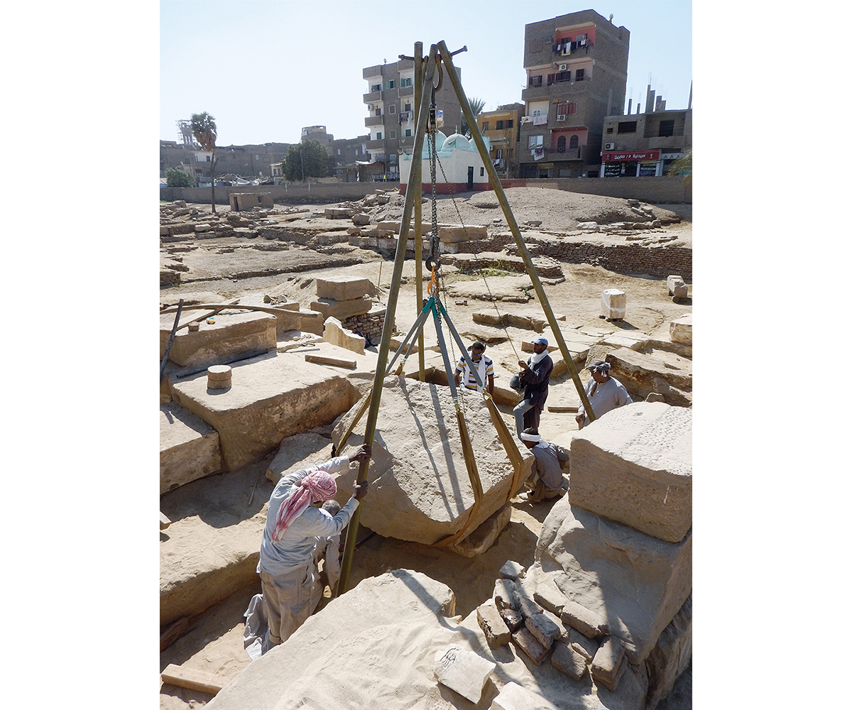 Outside the modern extent of the site, work is being conducted at the gateway of Anoninus Pius (“Bab el-Maganin”) and the numerous blocks in its vicinity, and an archival analysis of the mammisi (destroyed in 1861-1862) with the names of Caesarion and Cleopatra VII is being carried out.
