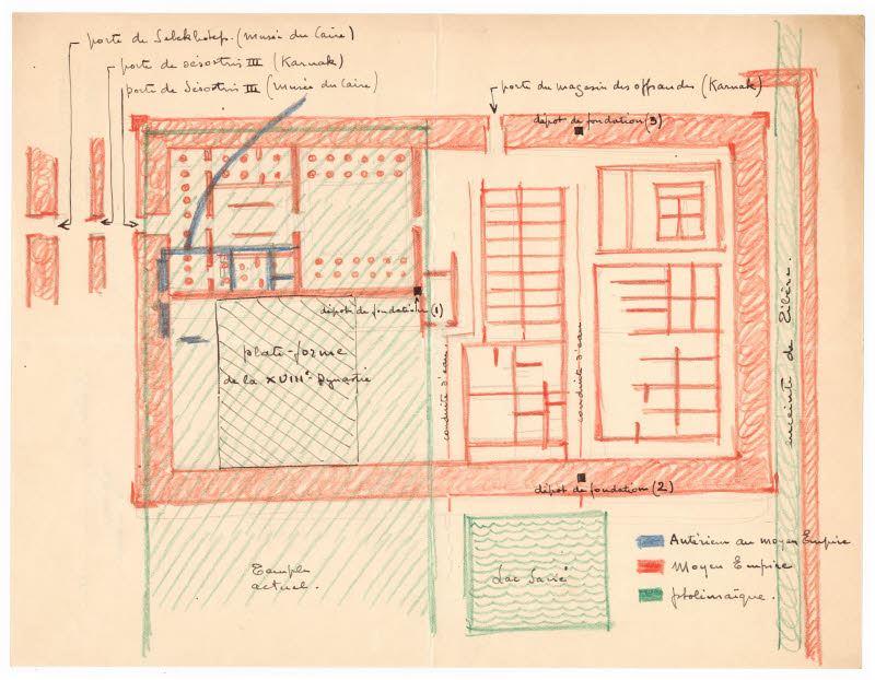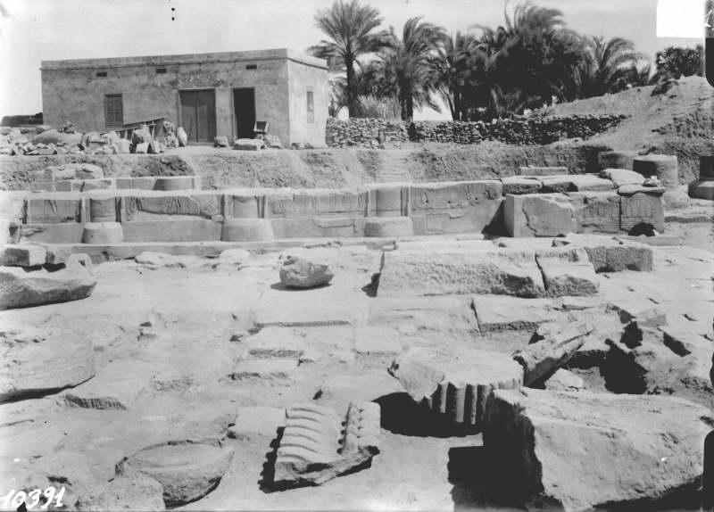 Médamoud, situé sur la rive est à 5 km au nord de Karnak, a été un des fleurons de l’archéologie française du début du XXe siècle. Fouillé entre 1925 et 1939 par l’Ifao à la demande du musée du Louvre, le site a livré de nombreux monuments s’échelonnant de la XIe dynastie jusqu’à l’époque byzantine. Les fouilles ont été dirigées par Fernand Bisson de la Roque (1885-1958) entre 1924 et 1932 et par Clément Robichon (1906-1999) entre 1933 et 1939. Le premier était pensionnaire à l’Ifao entre 1921 et 1930, date à laquelle il fut détaché auprès des Monuments Nationaux en tant que chef de chantier. Le second, architecte de formation, rejoignit l’Ifao en 1930 comme attaché libre jusqu’en 1946, année où il remplaça Bernard Bruyère (1879-1971) au poste de conducteur technique des fouilles.