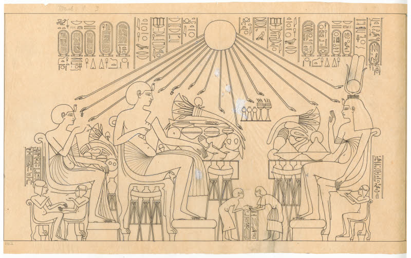 À sa création en 1880, l’École française du Caire ne disposait pas encore des moyens financiers nécessaires pour réaliser de grandes fouilles archéologiques. Les premières missions de ses membres scientifiques ont donc été de faire des relevés épigraphiques dans des monuments connus mais mal publiés. Urbain Bouriant (1849-1903), l’un des premiers chercheurs de l’Institut, fut envoyé sur le site de Tell el-Amarna où se trouvaient des tombes déjà visitées par l’expédition prussienne de Karl Richard Lepsius (1810-1884). Plusieurs voyages sur le site entre 1882 et 1885, dont certains en compagnie de Gaston Maspero (1846-1916), lui ont permis de relever des inscriptions inédites et de vider des tombes anépigraphes jusque-là inconnues dans la partie nord de la nécropole. Nommé directeur de l’Ifao en 1886, U. Bouriant monte et dirige une nouvelle expédition sur le site en 1893, composée de Gustave Jéquier (1868-1946), George Legrain (1865-1917) et Joseph Gautier (1861-1924) pour terminer le travail débuté quelques années plus tôt dans les tombes nord et étudier celles situées dans la partie sud de la nécropole. Environ 26 tombes sont visitées et de nouvelles stèles-frontière sont découvertes. Plus de trois cents relevés épigraphiques ont été exécutés. Une partie d’entre eux a été publiée dans Urbain Bouriant et alii, Monuments pour servir à l’étude du culte d’Atonou en Égypte. Tome premier. les tombes de Khouitatonou, MIFAO 8, Le Caire, 1903. Mais d’autres, ainsi que des documents relatifs au travail réalisé sur place, sont encore inédits. Les service des archives conserve des documents de la mission dans les tombes nord : les dessins originaux, des notes manuscrites et des photographies sur plaques de verre qui sont conservés dans le fonds Bouriant et la collection d’archives Tell el-Amarna.