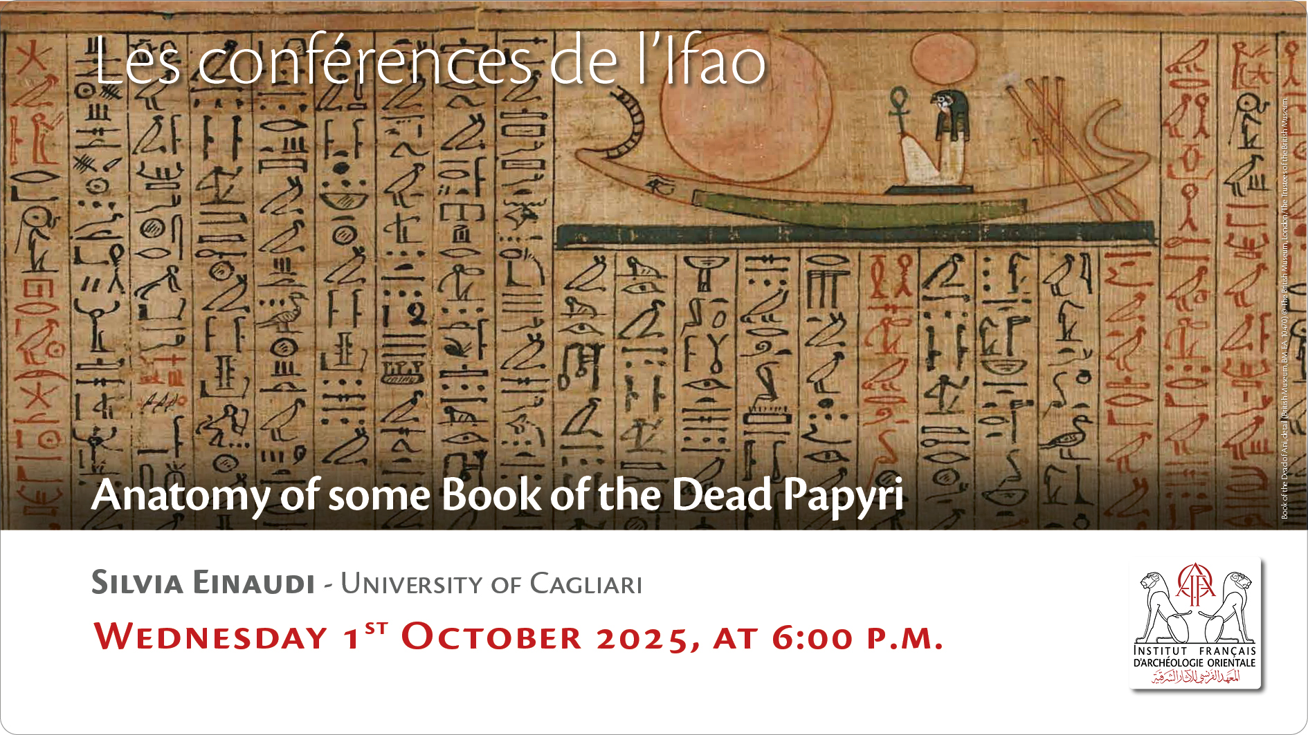 Le 30 septembre 2025, Les cours de l’Ifao par Axelle Brémont, Pierre Tallet, Simon Connor, Laura Aguer, Abbès Zouache, Marion Claude, Anna Lagaron, Valentina Gasperini, Cedric Larcher, Mathilde Prévost, Séverine Marchi et Antoinette Ferrand: La religion hors les murs [en savoir plus] |