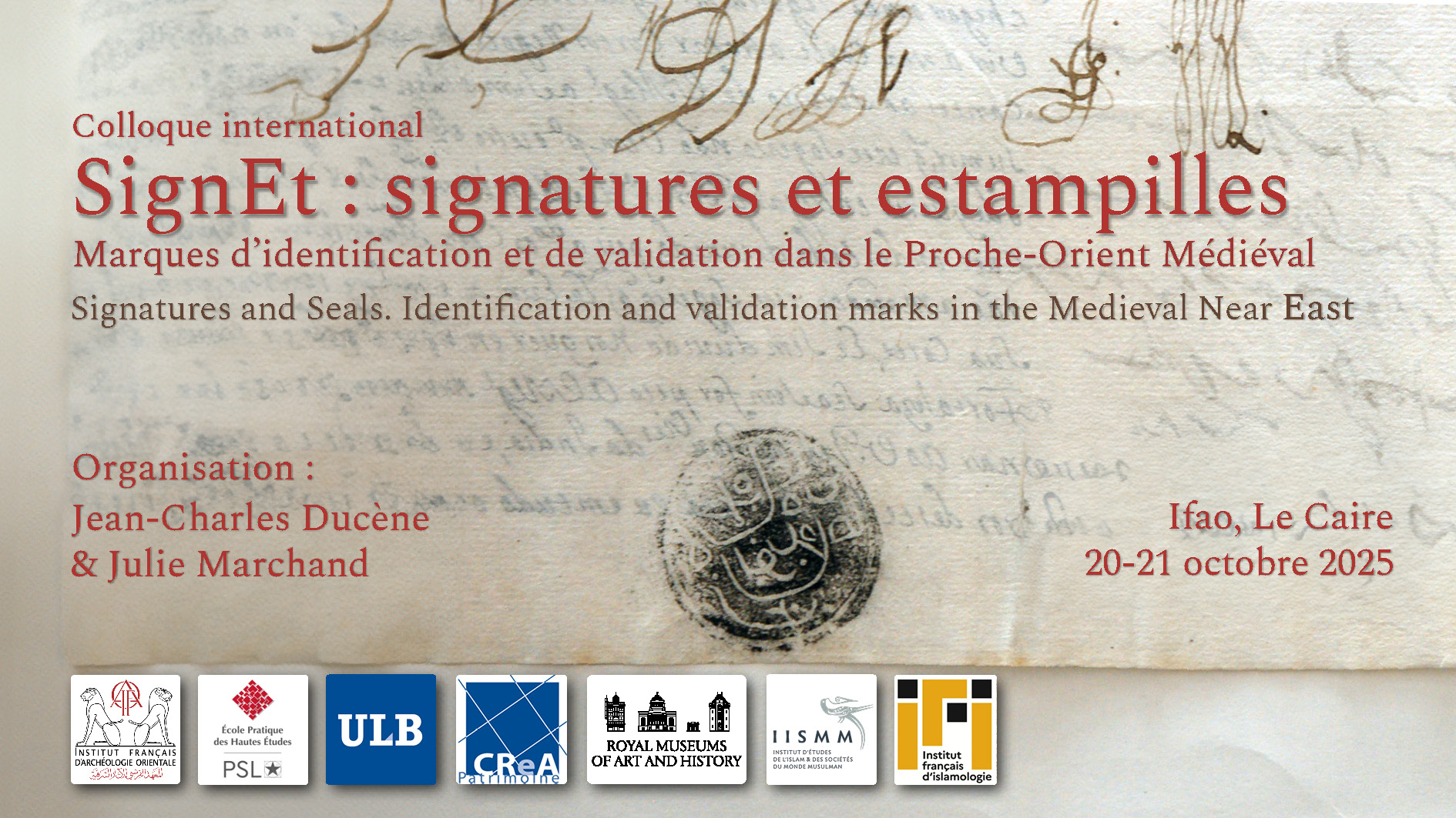 Du 20 au 21 octobre 2025, Colloque international organisé par Jean-Charles Ducène (EPHE-PSL) & Julie Marchand (ULB & Musées Royaux d’Art et d’Histoire, Bruxelles): SignEt : signatures et estampilles, en partenariat avec l’EPHE-PSL, ULB & KMKG-MRAH, IISMM, IFI [en savoir plus] |