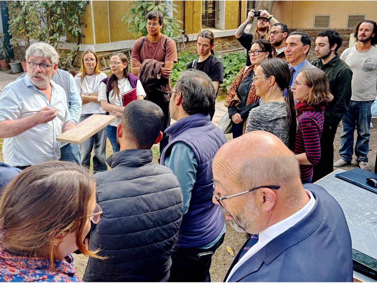 Deux moments forts de partage et de convivialité ont réuni les membres de l’équipe de l’Ifao et nos partenaires. Les voeux de la direction pour la nouvelle année 2026 ont été présententés autour d’un déjeuner et des gallettes de rois traditionnelles le 18 janvier. L'Iftar du mois de ramadan, organisé le 18 mars, a été l’occasion d’échange et de détente. جمع حدثان بارزان اتسمتا بروح المشاركة والود بين أعضاء فريق المعهد وشركائنا. وقد تم تقديم تمنيات الإدارة بالعام الجديد خلال مأدبة غداء تخللتها كعكات الملك التقليدية في ١٨ يناير. أما حفل الإفطار في شهر رمضان، الذي نُظم في ١٨ مارس، فقد شكّل فرصة للتواصل والاسترخاء. Enseignements et formationsUne équipe de trois formatrices de l’Institut national du patrimoine : Charlotte Rerolle , Anne-Marie Geffroy et Marie Petit se sont déplacées au Caire début janvier afin d’animer une formation à destination des restaurateurs du pôle archéométrie de l’Ifao autour de la restauration des métaux et des briques. La formation d’une semaine comprenait des cours théoriques et de méthodologie, des démonstrations pratiques au laboratoire de restauration de l’Ifao, une visite du musée du Caire et du site de Saqqara. Anita Quiles, responsable des projets scientifiques du pôle archéométrie de l’Ifao, s’est déplacée également au Caire pour encadrer la formation. Le 16 février 2026 s’est tenu à l’Ifao l’Atelier de recherche et de formation : Stèles funéraires islamiques II. Étude de la matérialité des stèles dans le cadre du projet n°23121 sur les stèles funéraires islamiques. Le matin, un vingtaine de chercheurs accompagnée des directeurs de l’Institut a visité le complexe de l’émir Qurqumas où sont entreposées quelque 4500 stèles. Après avoir présenté les collections, Anna Lagaron, membre scientifique de l’Ifao en charge de l’étude des stèles, a guidé les visiteurs pour leur faire découvrir la chaîne opératoire et rencontrer les équipes impliquées dans le projet : nettoyage et restauration des stèles, cotation, analyse, description individuelle, photographie puis conditionnement et rangement. L’après-midi s’est ouvert sur la présentation de l’ouvrage de Thierry Gregor et Bertrand Riba, intitulé De la trace à l’outil (Fedora, 2025). Thierry Gregor, chercheur associé au Centre d’études supérieures de civilisation médiévale (Poitiers, UMR 7302), a exposé comment lire les traces laissées par les outils sur la pierre et en tirer de précieuses informations. Cette présentation théorique a été suivie d’un atelier pratique dans les jardins de l’Ifao lors duquel les participants ont essayé de lire les traces sur une sélection de stèles funéraires issues des collections de l’Institut. Thierry Gregor, Philippe Bastide (professeur à l’Université française d’Égypte, membre du projet Stèles funéraires islamiques) et Nadim Jacquemond (tailleur de pierre) ont ensuite effectué une démonstration, du dégrossissage de la pierre à la gravure de l’inscription, offrant l’opportunité d’observer l’impact des outils sur différents matériaux (calcaire, grès, marbre). Les participants ont à leur tour pris en mains les outils et tenté de reproduire ces gestes afin de mieux réaliser les contraintes matérielles et techniques que représentent ces opérations. توجهت ثلاث مدربات من المعهد الوطني للتراث: شارلوت ريرول وآن ماري جيفروي وماري بيتي إلى القاهرة في مطلع شهر يناير لتقديم دورة تدريبية لمرممي قسم الترميم بالمعهد حول ترميم المعادن والطوب. تضمنت الدورة التدريبية التي استمرت أسبوعًا محاضرات نظرية ومنهجية، وعروضًا عملية في مختبر الترميم بالمعهد، وزيارة إلى المتحف المصري وموقع سقارة. كما شاركت أنيتا كيلس، مسؤولة المشاريع العلمية في قسم الأركيومتري في المعهد الفرنسي لآثار مصر، إلى القاهرة للمشاركة في الدورة التدريبية. استضاف المعهد الفرنسي للآثار الشرقية يوم ١٦ فبراير ٢٠٢٦ ورشة عمل للبحث والتدريب بعنوان: (شواهد القبور الإسلامية ٢، دراسة مادية للشواهد) في إطار المشروع رقم ٢٣١٢١ حول شواهد القبورالإسلامية. في الصباح، زار حوالي عشرين باحثًا برفقة مديري المعهد مجمع الأمير قرقماس، حيث يتم تخزين حوالي ٤٥٠٠ شاهد. بعد عرض المجموعات، قامت آنا لاجارون، العضو العلمي بالمعهد والمسؤولة عن دراسة الشواهد، بتوجيه الباحثين و تعريفهم بتسلسل عمليات الدراسة والتعرف على الفرق المشاركة في المشروع: التنظيف والترميم، الفهرسة، التحليل، الوصف الفردي، التصوير الفوتوغرافي، ثم التغليف والتخزين. استمر اليوم بعرض للكتاب الذي ألفه تيري جريجور وبرتراند ريبا بعنوان De la trace à l’outil، شرح تيري جريجور، الباحث المشارك في مركز الدراسات العليا لحضارة القرون الوسطى، كيفية قراءة الآثار التي تخلفها الأدوات على الحجر واستخلاص المعلومات القيمة منها. تلا هذا العرض النظري ورشة عملية في حدائق المعهد،