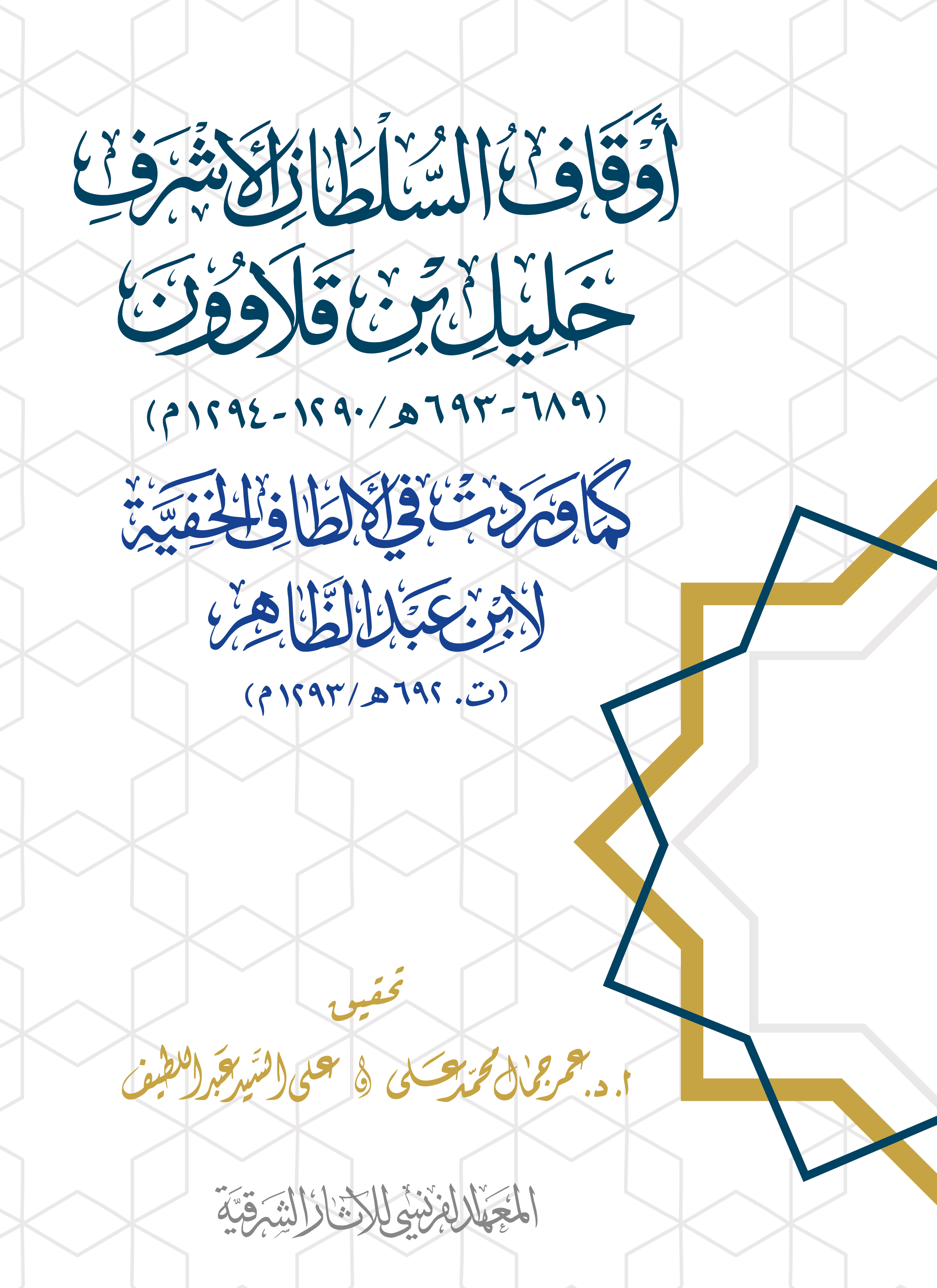 يُقدم هذا الكتاب النصّ الكامل لأوقاف السُّلْطان الأشرف خليل بن قَلاوون (689-693 هـ/1290-1294 م) على مدرسته المعروفة بالمدرسة الأشرفية بالقاهرة وعلى مصالح القُبَّة المَنصورية التي أنشأها والده السُّلْطان المَنصور قَلاوون. وقد حفظ لنا هذا النصّ المؤرخ مُحيي الدِّين عبد الله بن عبد الظَّاهر (620-692 هـ/1223-1293 م) في كتابه الألطاف الخفيَّة من السِّيرة الشَّريفة السُّلْطانية المَلَكيّة الأشرفية.