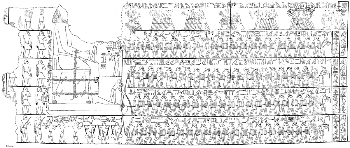 Before the discovery of Quarry P and its inscriptions, the autobiography of Weni, a high official of the 6th Dynasty, was the most ancient source we had relating to an expedition to Hatnub during the reign of Merenre I. This text, which shows Hatnub as a region where alabaster was extracted, provided no indicated as to the location of the site. It is thanks to the famous depiction in the tomb of governor Djehutyhotep at Deir el-Bersheh of the transportation of a colossal statue of alabaster, and the text accompanying it, that enabled, for the first time, a link to be established between Hatnub and the Hare nome. The expedition narrative gave us to understand that the quarries were located in the region of ancient Hermopolis, the capital of the Hare nome.
