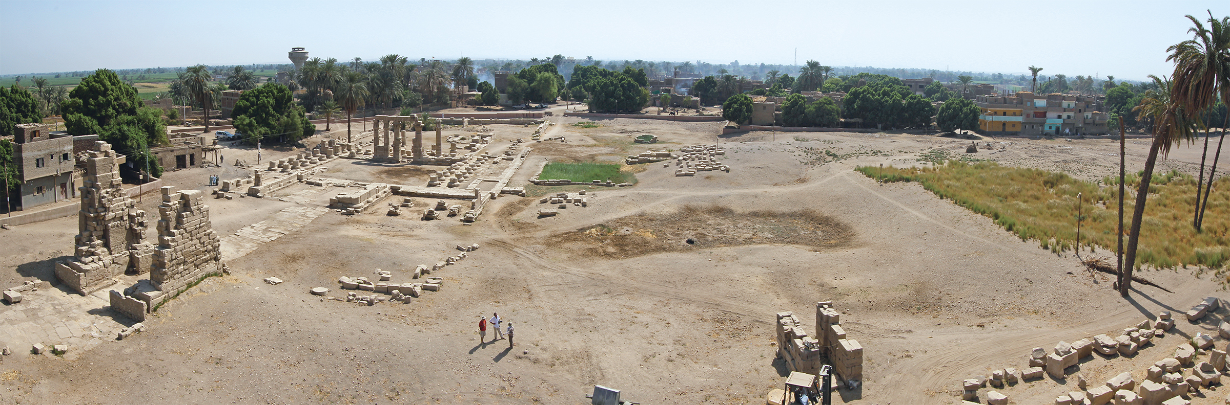 لكن الهدفَ الأساسَ للبَعْثَةِ في السنواتِ القادمة هو توسيعُ نطاقِ أبحاثنا لتمتدَّ إلى القطاعاتِ التي لم تُكتشف بعد والواقعةِ خارجَ المنطقة المُقدَّسة، والذي يغطى ثلاثةَ أرباعِ مساحةِ الموقع. في عام 2015، بدأت أعمالُ برنامجِ كشف مُكثَّف، يدعمُه مسحٌ مغناطيسىٌّ أرضىّ، تمَّ بالشَّرَاكةِ مع الوحدةِ البَحْثيَّةِ المشتركة UMR 7696 METIS. حتى تاريخه، اكتشفنا ورشتيْن لإنتاجِ الخَزَفْ من الأُسرةِ الخامسةَ عشرةَ، وذلك على جانبَيّ سورٍ يبدو أنه يحيطُ النسيجَ العمرانىّ على امتدادِ عشراتِ الأمتار. وفي الجنوب منهما تمَّ تحديدُ قطاعٍ ثالثٍ للأفرانِ من عصرِ الأُسرة الثامنةَ عشرةَ. وزيادةُ عددِ هذه «النَّقاط المضيئة» ستسمحُ في الأعوامِ القادمةِ بدراسةِ التجمُّعاتِ السكنيَّةِ التي كانت تصاحبُ المعبدَ لإلقاءِ الضوءِ على التفاعلاتِ بين معبدٍ طِيبيٍّ وسياقهِ الحَضَريّ.