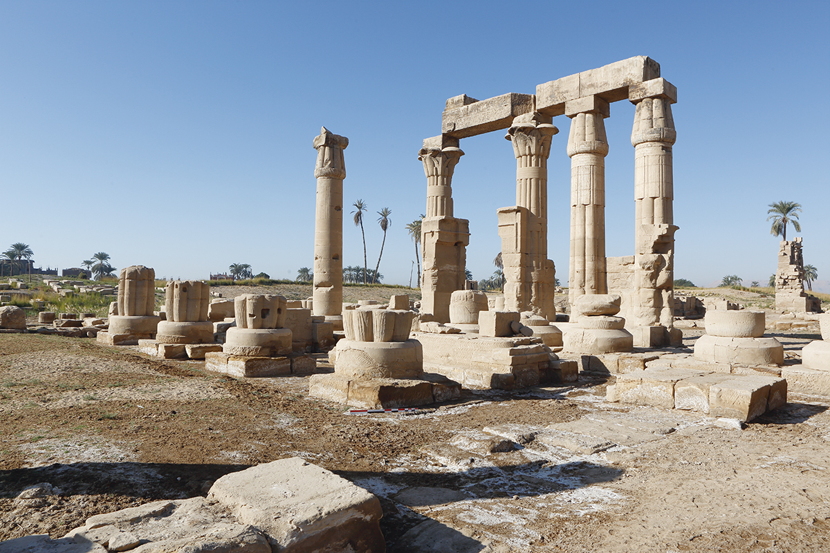 However, the rise in the water table in the Theban region, due to the intensification of farming, has weakened the temple and the blocks belonging to the gateway of Tiberius, which is affected by rising salinity. In addition, excavations at the start of the century restored using cement which is still encrusted on a number of blocks and which contributes to their degradation. This is why an overall plan of the site’s restoration was begun from 2011 with the involvement of the Institute’s restoration services. It will enable former restoration work in cement to be removed and surviving masonry to be consolidated.