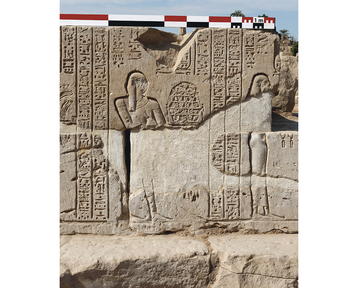 La mission – sous le patronat de l’Ifao et de Sorbonne Université, et avec l’aide financière du fonds Khéops pour l’archéologie – s’attache à relever ces défis. En premier lieu, les fouilles ont livré une riche documentation épigraphique qu’il convient de réétudier. En particulier, les inscriptions du temple – notamment les soubassements publiés par Étienne Drioton en 1925 et 1926 – méritent une nouvelle édition, accompagnée d’une traduction actualisée et d’un commentaire de la théologie du lieu. Cette dernière s’appuiera également sur l’édition du dernier monument inédit du site, à savoir la porte de Tibère. Il s’agit du propylône, érigé par Auguste et décoré par son successeur, qui constituait l’entrée monumentale du secteur cultuel et était décoré d’un résumé de la théologie de Médamoud. Son effondrement, probablement au xviiie s., a produit un éboulement des blocs de grès qui ont été dégagés dans les années 1920. Ils sont aujourd’hui photographiés, en partie restaurés, et désormais protégés sur des banquettes construites ad hoc. L’étude du décor, amorcée par Étienne Drioton, a fait l’objet d’un premier puzzle photographique réalisé par C. Robichon, d’abord confié à Serge Sauneron puis, en 1973, à Dominique Valbelle. Le projet entre désormais dans sa phase finale et donnera accès à un des derniers propylônes thébains inédits.